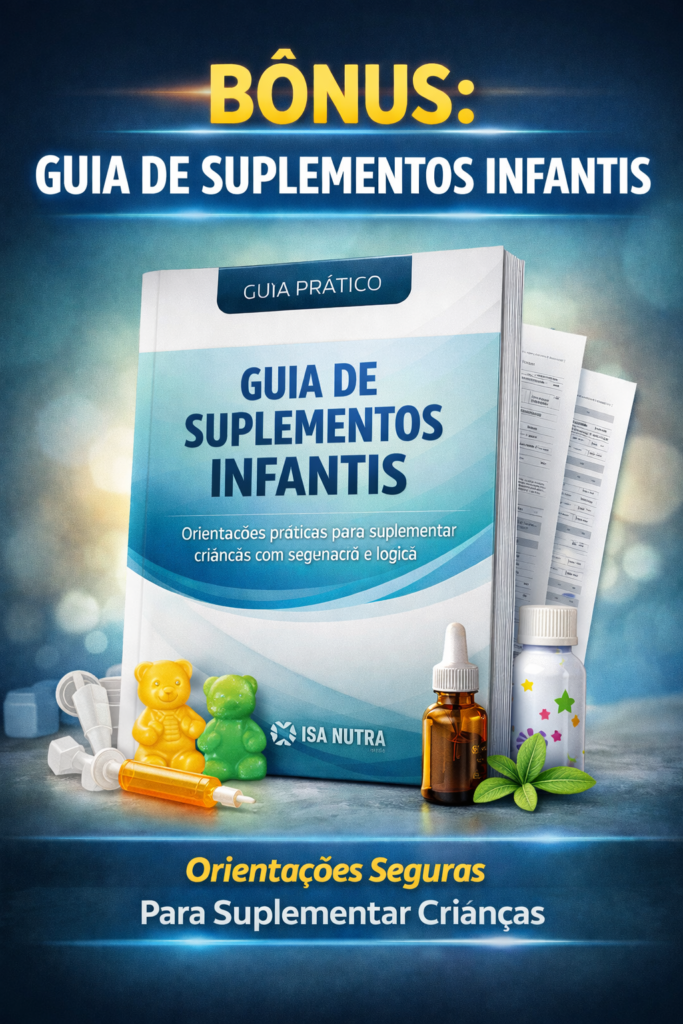 Orientações específicas sobre suplementação pediátrica, com considerações sobre segurança, dosagens ajustadas e particularidades metabólicas infantis.