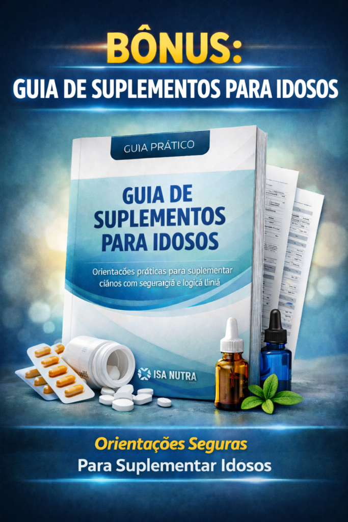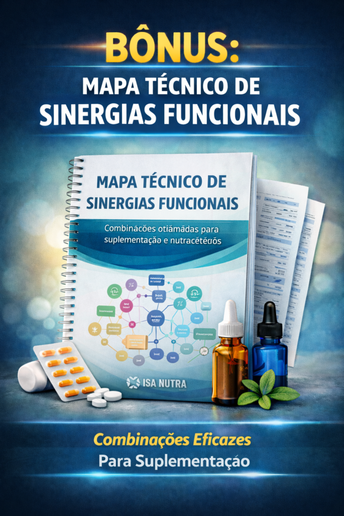 Acesso à plataforma com inteligência artificial, materiais de apoio, guias práticos e bônus exclusivos relacionados à suplementação funcional.